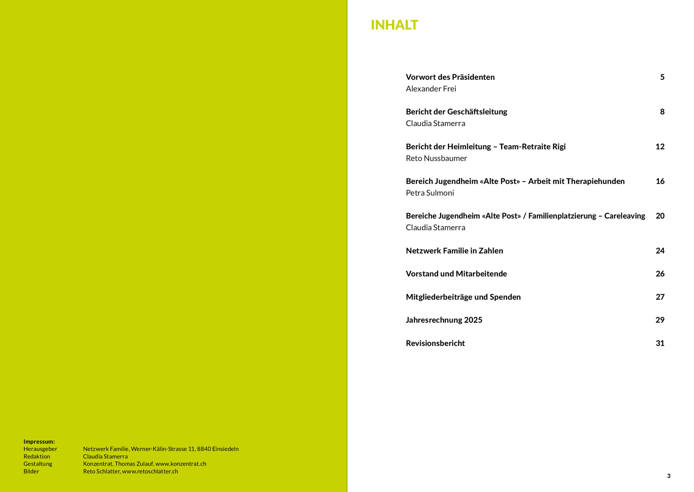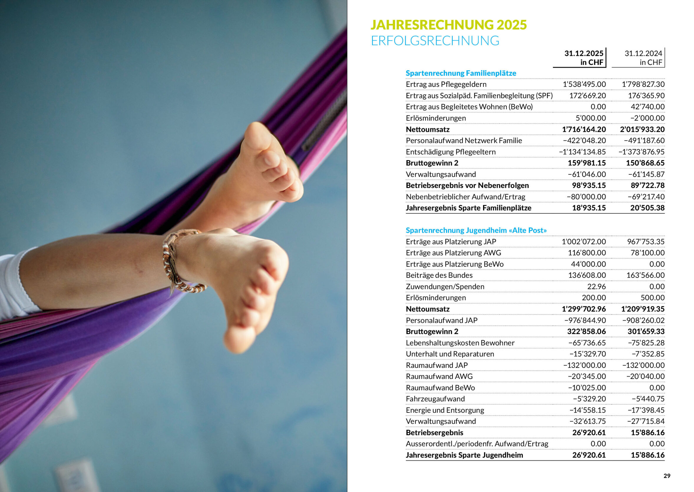 Downloads Jahresberichte Jahresbericht 2025 (Vorschau) Jahresbericht 2024 (Vorschau) Jahresbericht 2023 (Vorschau) Jahresbericht 2022 (Vorschau) Jahresbericht 2021 Jahresbericht 2020 Jahresbericht 2019 Jahresbericht 2018 Jahresbericht 2017 Jahresbericht 2016 Jahresbericht 2015 Jahresbericht 2014 Diverses Statuten Organigramm Leitbild Vereinsgeschichte Leitfaden für Pflegeeltern Konzept Familienplatzierung Konzept Begleitete Besuche Konzept Begleitetes Wohnen Rahmenkonzept Jugendheim «Alte Post» Konzept Sozialpäd. Familienbegleitung Tarifliste 2024 Rückmeldung für Einweiser Checkliste Anfrage